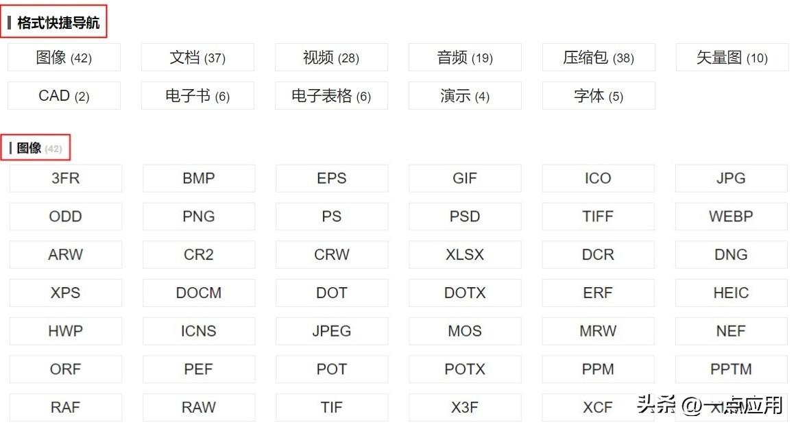 分类明确,支持输入关键词进行搜索查找,共支持十一种文件格式转换,其中“图像”有分42种,选择后点击相应的格式即可进行转换处理了。