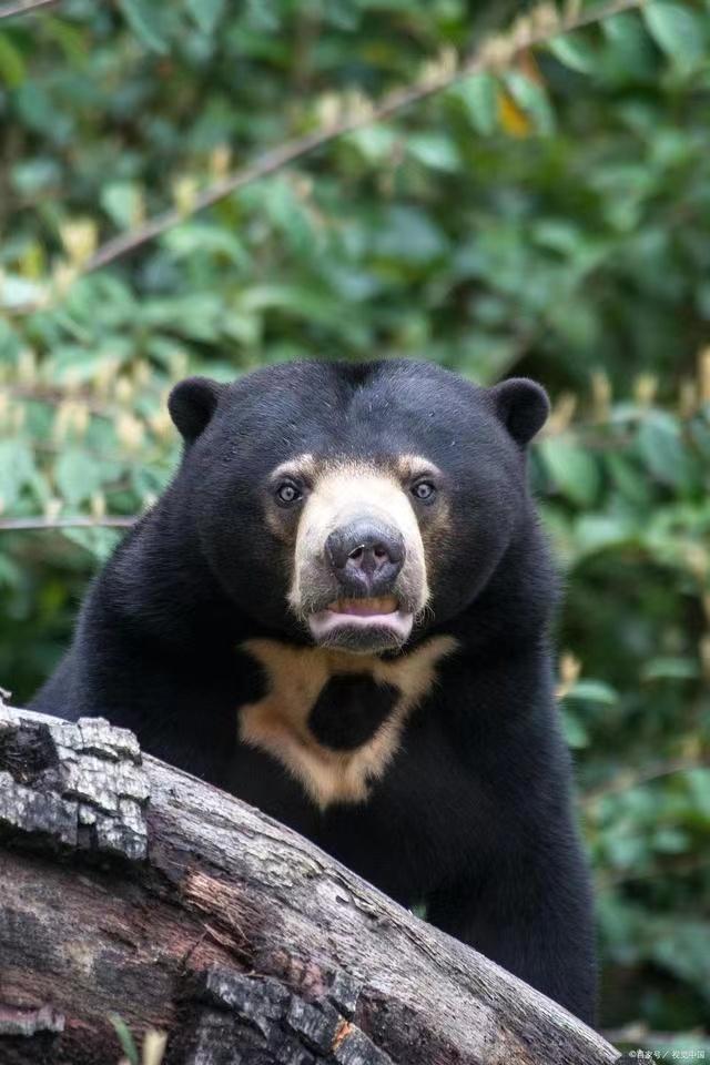 马来熊的毛色从深棕色到黑色不等,头部较大,眼睛周围有一圈明显的白毛,形成“眼镜”状,这也是它们的一个显著识别标志。