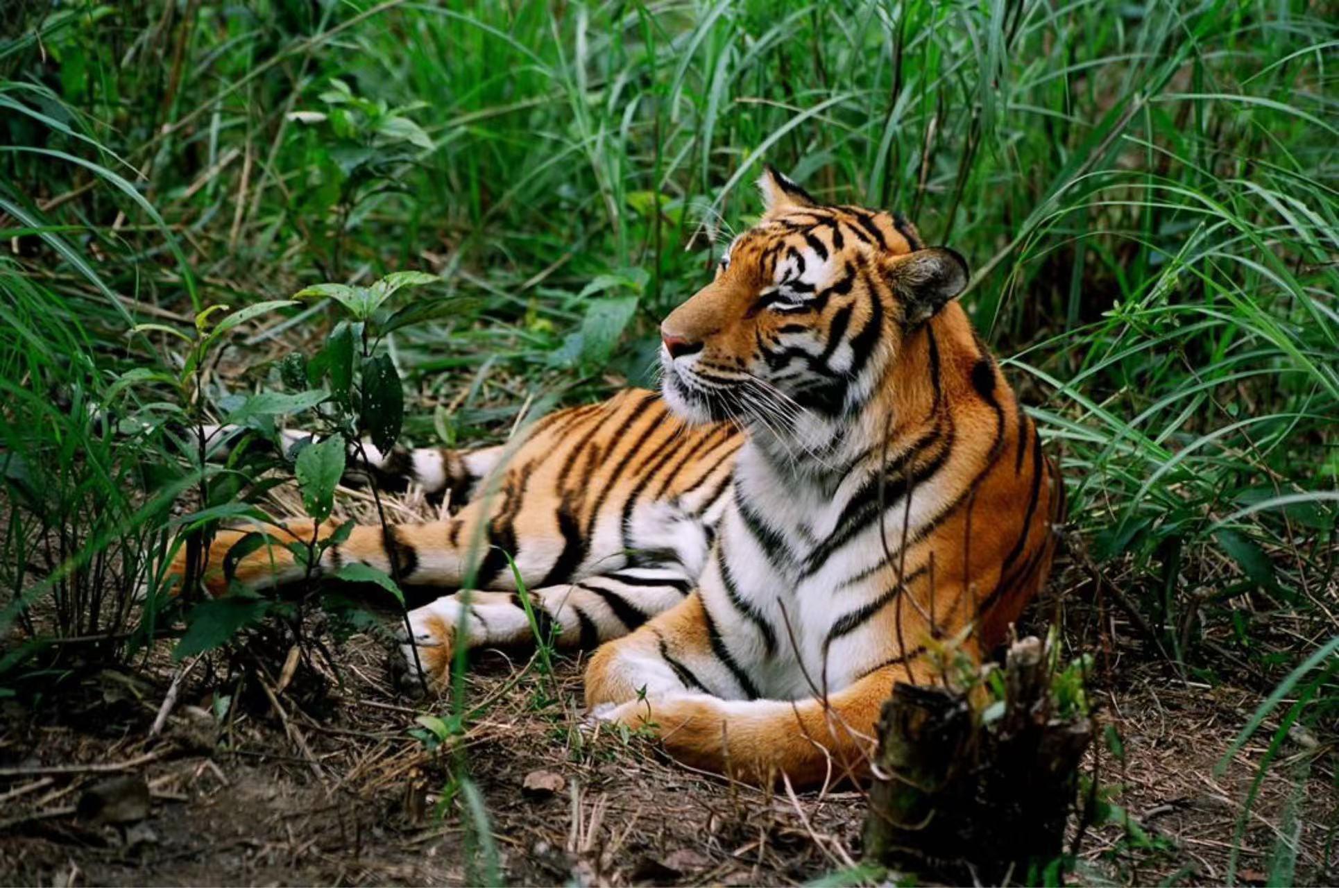 华南虎的体型比较修长,标志性的黑色条纹加上花色皮肤布满全身,这样的斑纹让华南虎在森林里更容易伪装和隐藏自己。