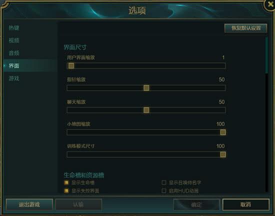 用户界面缩放影响着人物面板大小,一般设置为最小,扩大视野范围。小地图尽量不要变动,太小容易影响判断。
