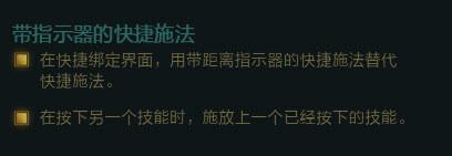 指示器快捷施法的意思是,按住技能的同时会显示弹道,松开手就会释放出去,相当于两种施法方式结合。按下技能时释放上一个技能,是为了防止技能互相取消,减少失误。