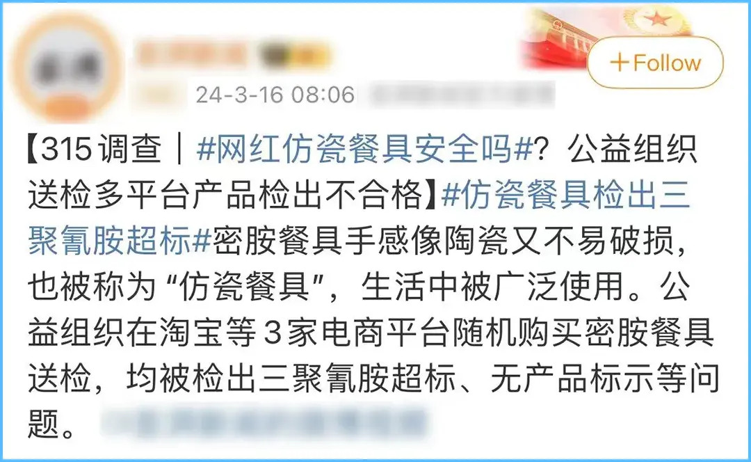 但是在澎湃新闻发布的315调查中,仿瓷餐具却“暴雷”了!