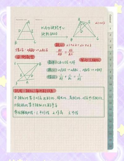 - 关键点: 这是由平行线的性质(同位角相等、内错角相等)直接推导出来的,本质上利用了AAA定理(得到两组或三组对应角相等),在涉及平行线的图形中,这个推论往往能快速找到相似关系。