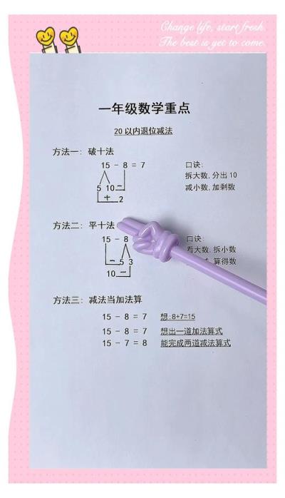 日常练习要轻松有效,每天花10分钟复习,从简单题目开始,避免机械做题,改用故事形式讲解问题,讲个小故事:“小猫有3条鱼,又钓到2条,现在有几条?”这让孩子在情境中理解加减法,练习时保持积极反馈,表扬小进步,增强自信。