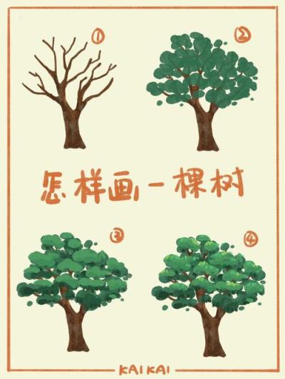 - 添加细节: 在树冠内部,用短线条或小笔触表现叶片簇的疏密感,完善树干纹理(简单线条即可)。