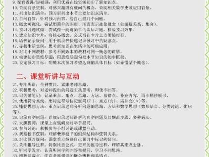 课堂听讲准则听讲时重点关注三大环节:概念形成过程、定理推导路径、公式应用条件,数学知识具有严密逻辑性,需保持连续注意力,建议采用“三点记录法”:记关键概念解析、记典型例题变式、记思想方法归纳,遇到疑难问题应在适当时机举手发问,或使用记号笔标注课后研讨。